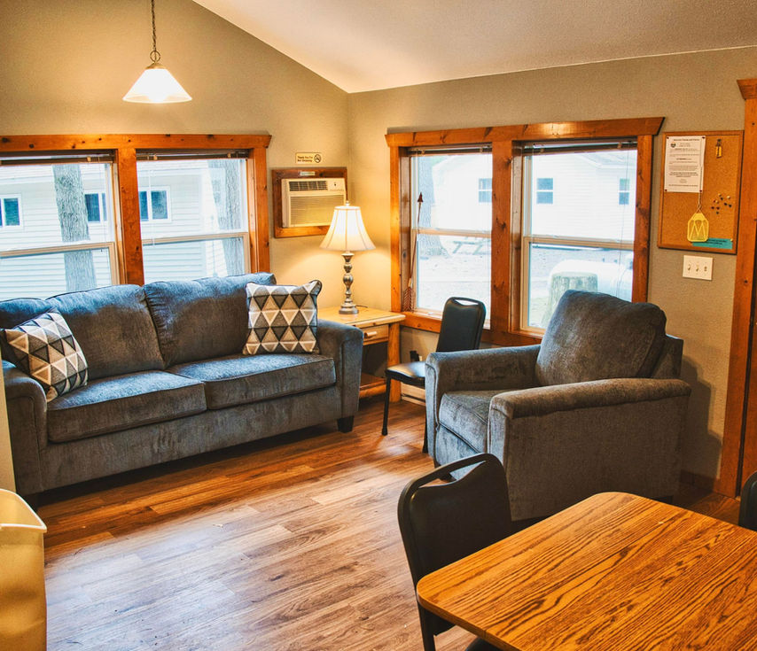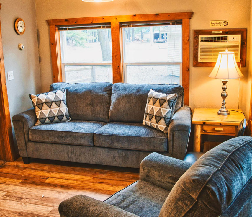 Cabin features include high-speed WIFI, cable TV, microwave, full size refrigerator, stove, cooking utensils, coffee maker (coffee not included, not a Keurig) Weber charcoal grill, toaster, and full size bathroom. All cabins are air-conditioned and SMOKE FREE. Bring your personal hygiene products, towels, soap (personal & dish) lawn chairs, etc. Prices are based on a weekly rate with up to a four person occupancy. Additional guests will be charged a $30 daily fee, $120 max weekly. Contact resort for possible daily rentals.